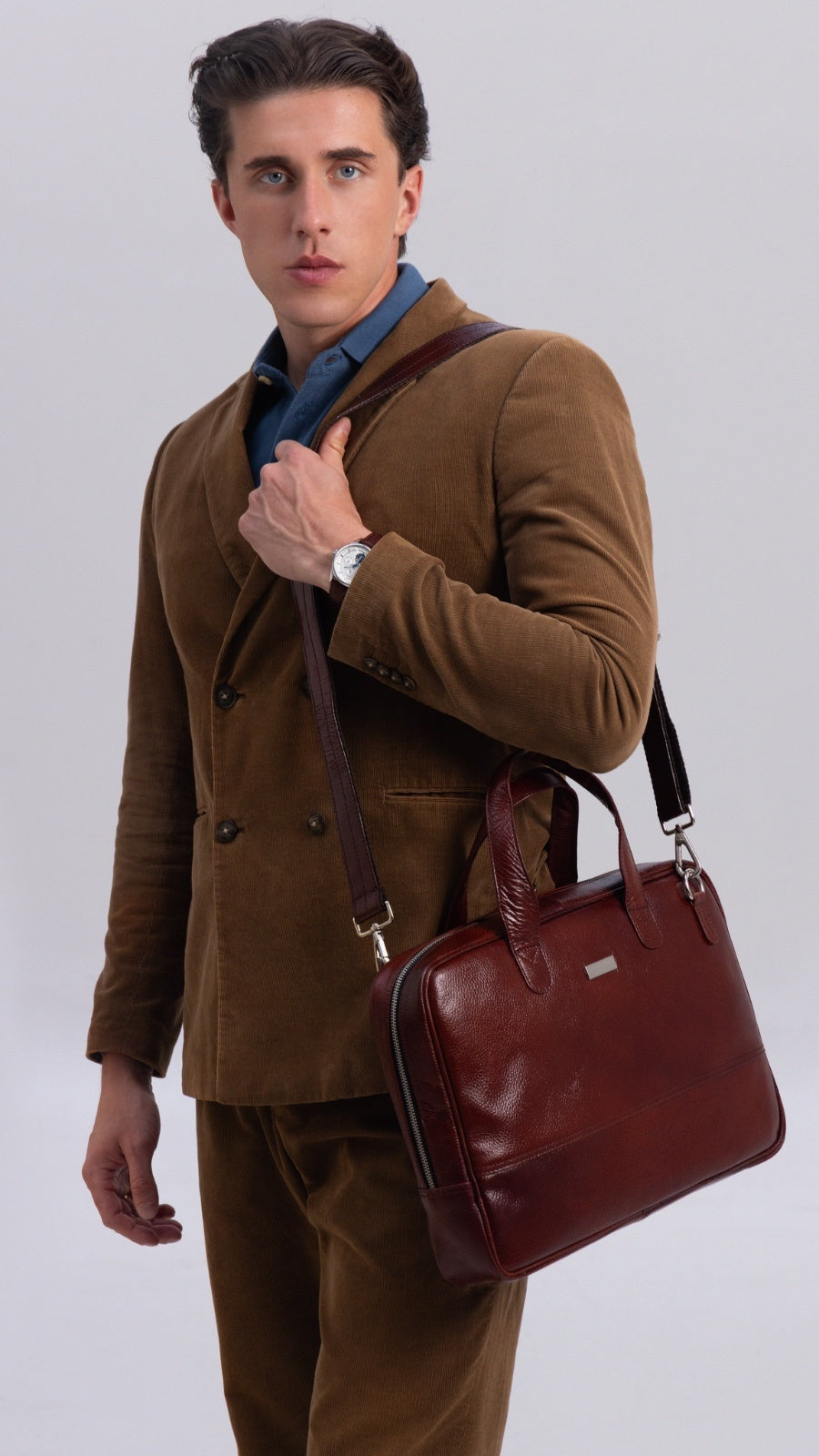 • Briefcase in soft grainy leather