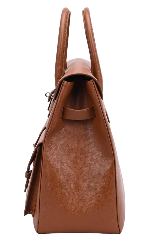 Crafted from premium Saffiano printed leather, The Alvoro embodies quiet sophistication and enduring strength. Its structured silhouette and rich texture create a timeless expression that complements both business attire and elevated casual looks. Thoughtfully designed, the polished metal lock detail and dual front pockets offer a refined balance of utility and elegance.